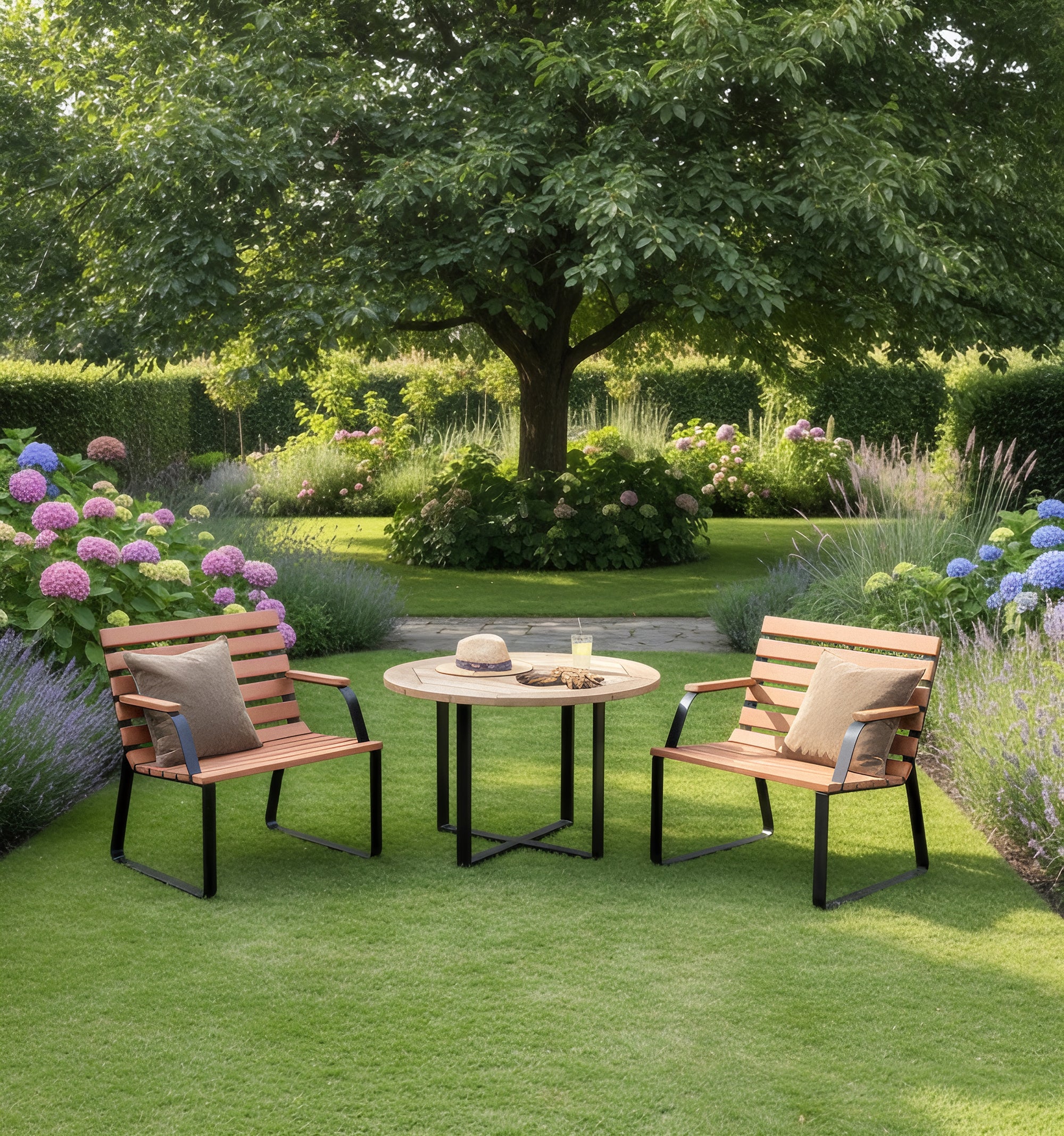 At Blazing Designs, we craft exceptional furniture that seamlessly blend the durability of powder-coated steel with the timeless beauty of treated hardwood. Our Origin Bench series transforms any space - from urban parks to private gardens.